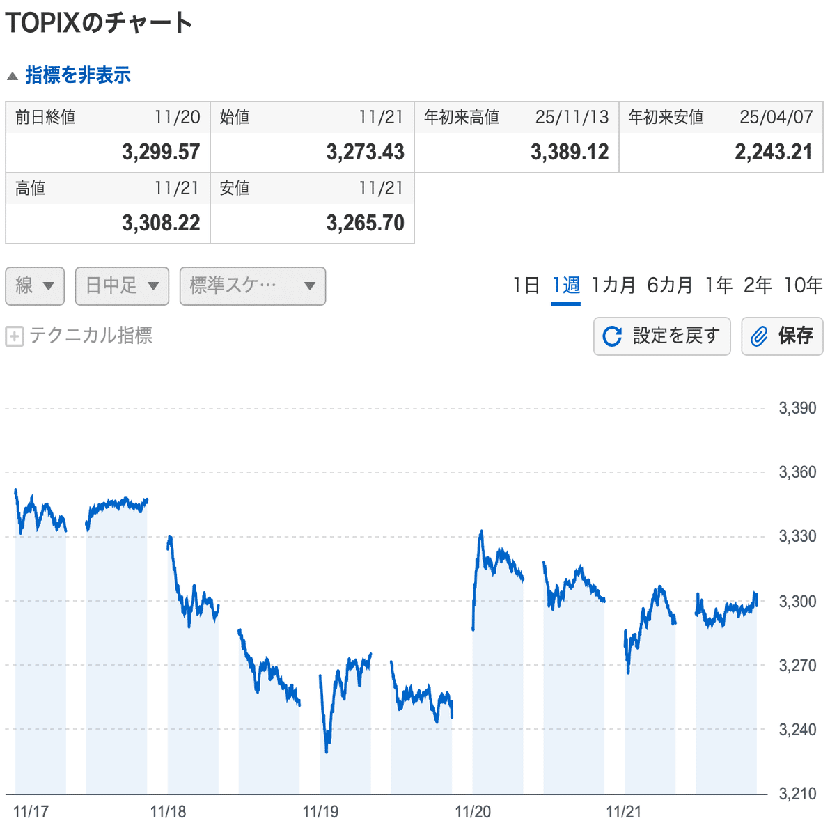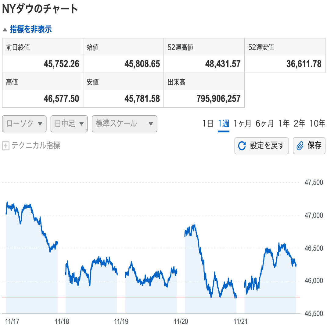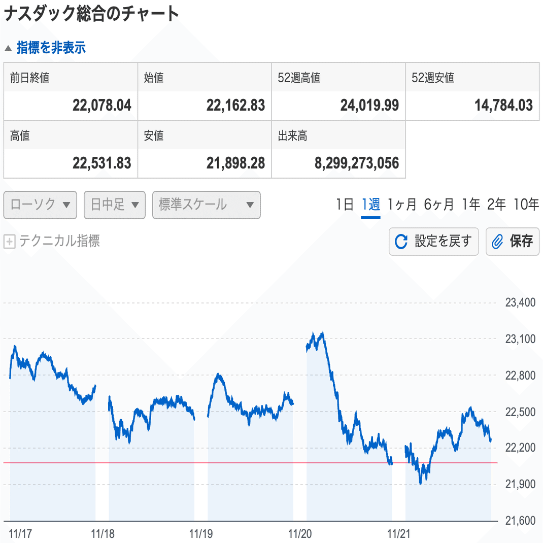 11月第3週(11/17〜11/21)のマーケットは、AI関連への過度な期待が剥落し、神経質な値動きに終始した一週間でした。