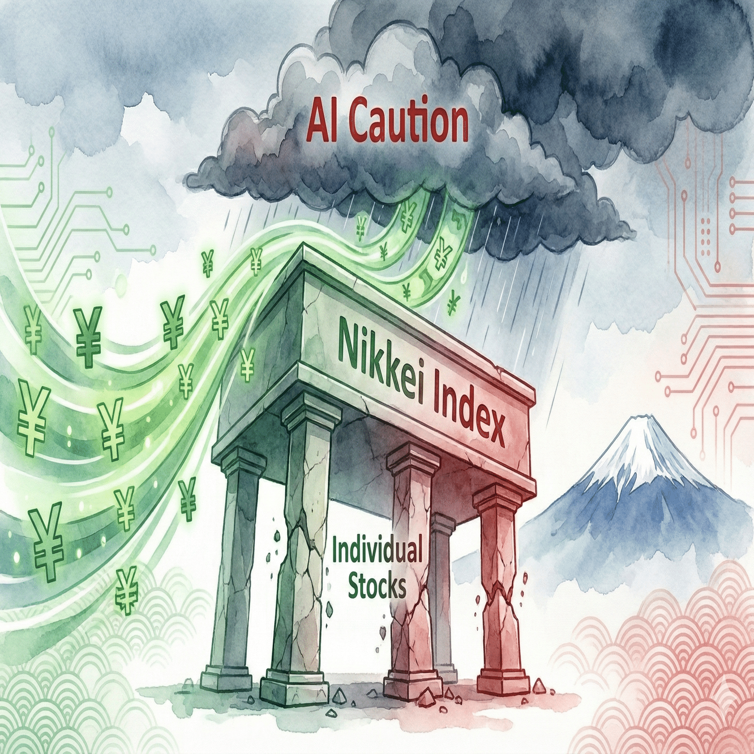 これまで一本調子で上がってきたAI関連銘柄に対し、「AIへの巨額投資は、本当にそれに見合う利益を生むのか?」という収益性への疑念(AI懐疑論)が投資家の間でふと頭をもたげました。