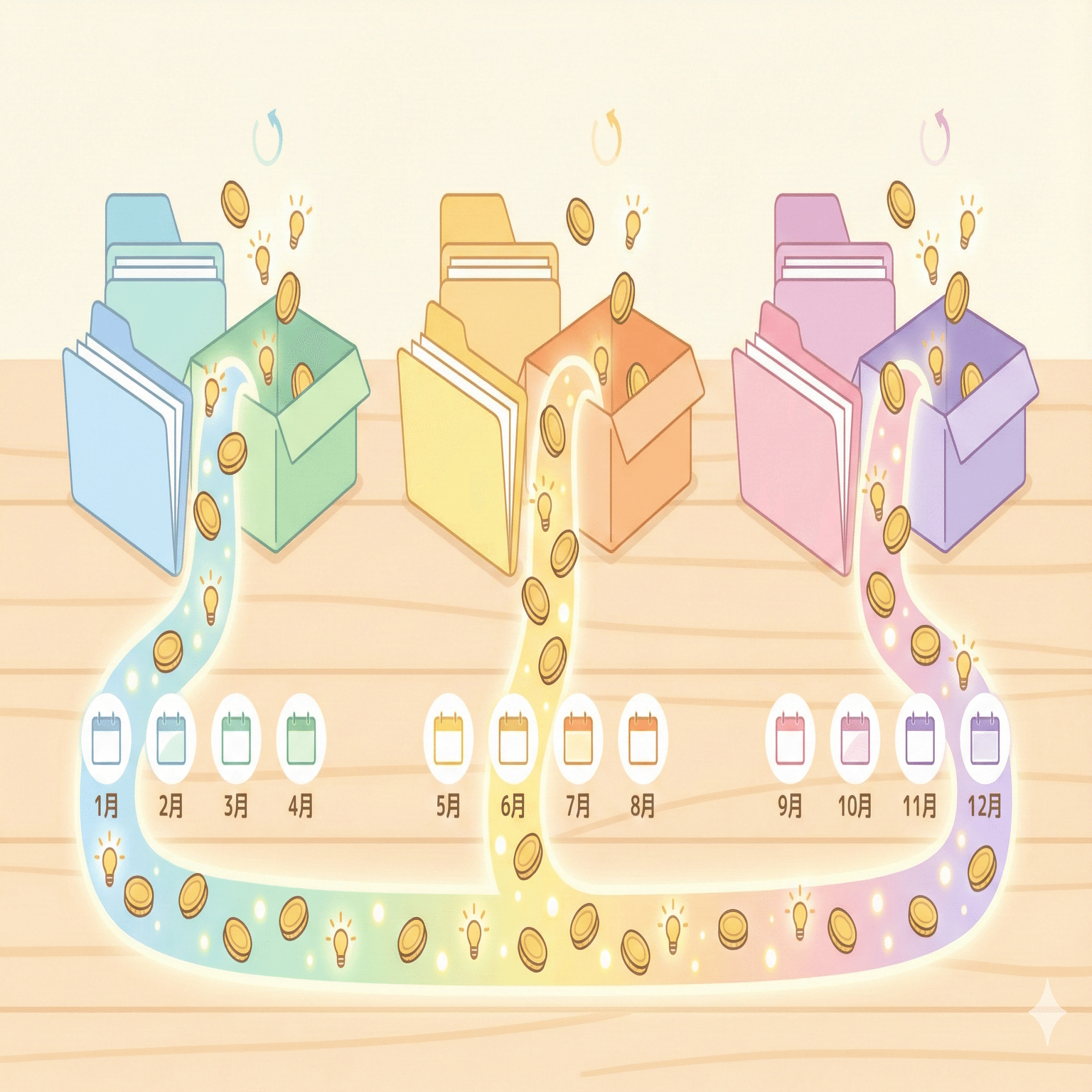 しかし、新NISAでは従来の「毎月分配型」ファンドは対象外です。 そこで今、賢い投資家たちがこぞって実践しているのが、「年4回決算型」のファンドを3つのグループで組み合わせて、自力で毎月分配を作るという裏ワザです。
