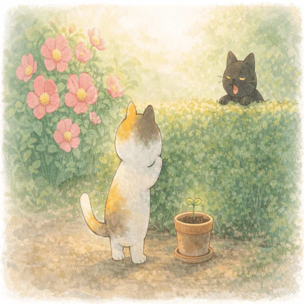 となりのお庭に背を向けて、ぼくは自分の小さな芽にそっとお水をあげた。