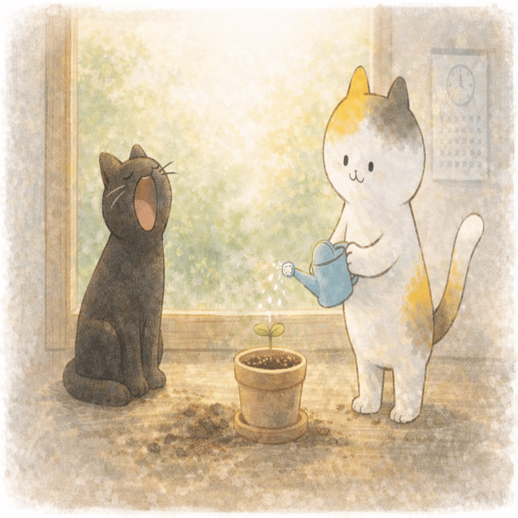水面より、土の中(仕組みと継続)を見れば大丈夫。焦りで動くほど、逆に根を傷つけやすいんだにゃ。