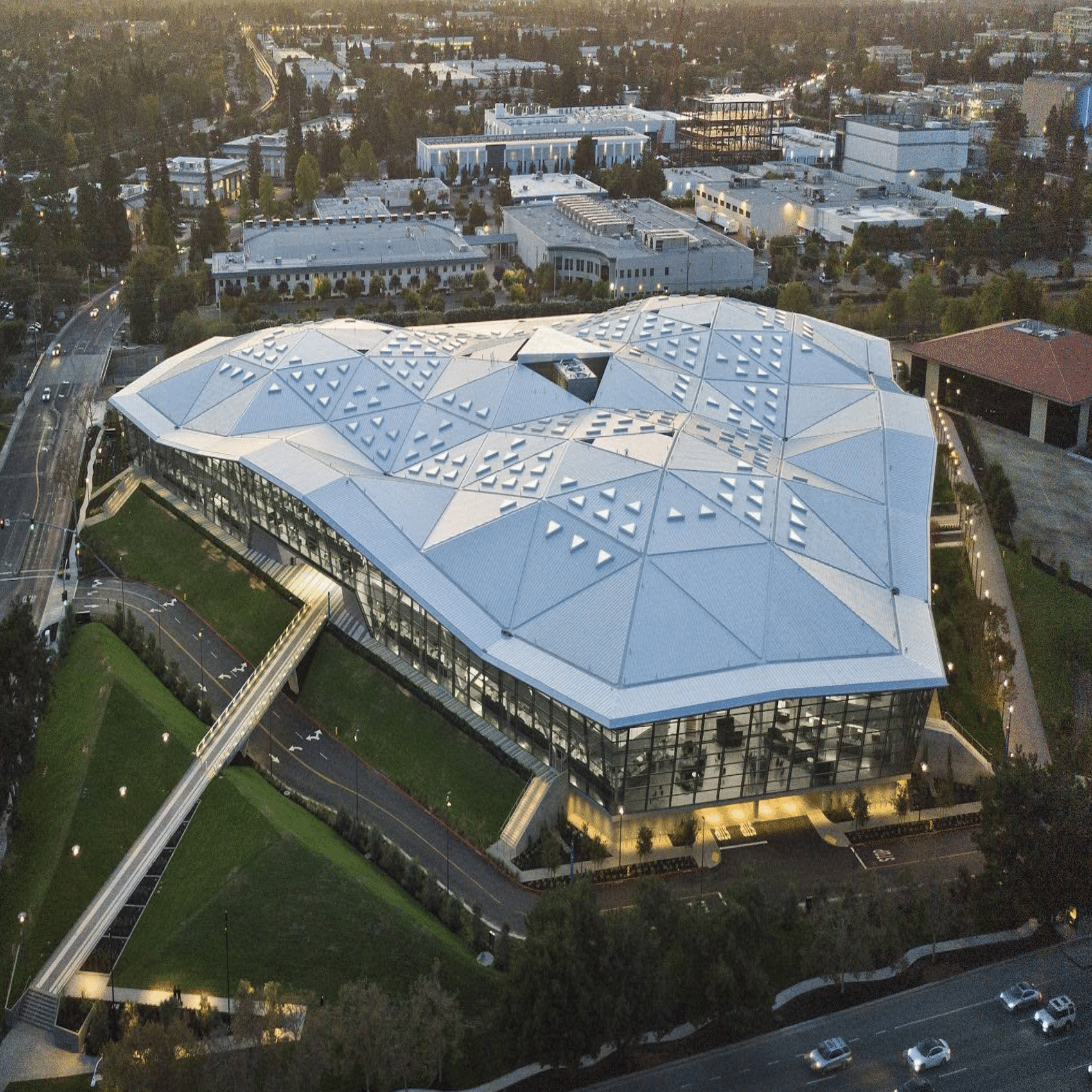 NVIDIAの本社ビル「Voyager」「Endeavor」は、ポリゴン(三角形)をテーマにした建築ですが、ここに工場はありません。そして、生産ラインも、製造スタッフもいません。